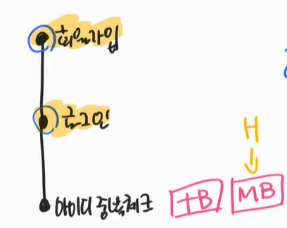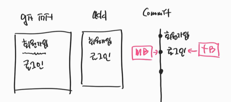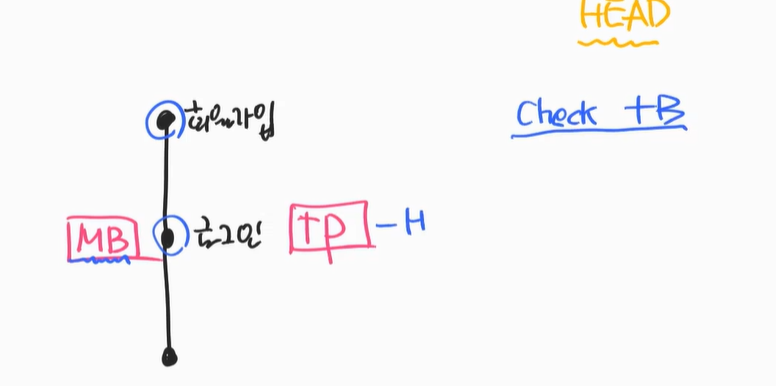 tb 포인터가 개발을 하고 커밋을 하면, main 브랜치 포인터는 그대로 있고