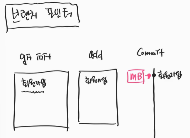 해당 가지가 마스터브랜치가 되고, 헤더는 mb 포인터를 가리키게 된다.