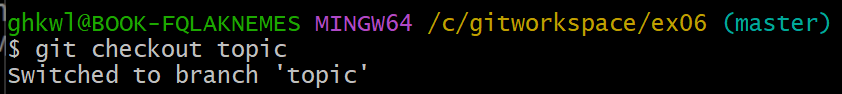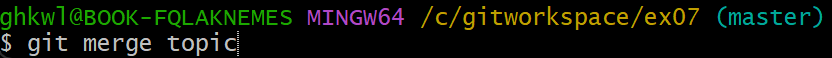 따라서 우리는 master 브랜치에다 topic 의 commit 내용을 병합하게 된 것이다.
