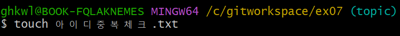토픽 브랜치 포인터는 아이디 중복체크를 가리킨다.