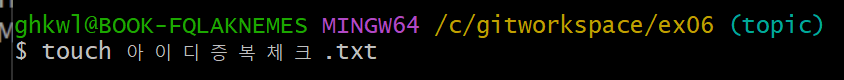 topic 브랜치에서 아이디중복체크 만들고 add, commit 진행