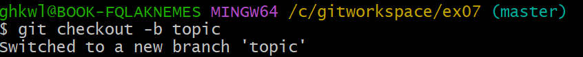 새로운 브랜치 topic 을 만들고 기능을 개발한다고 하면,