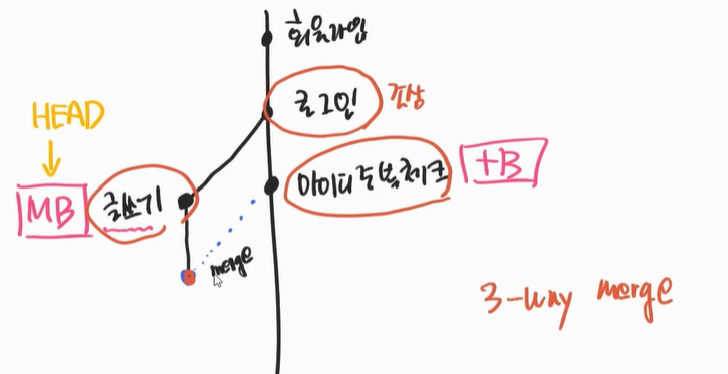 사진과 같이 3가지 부분을 본다햇 3 way merge 라 한다.