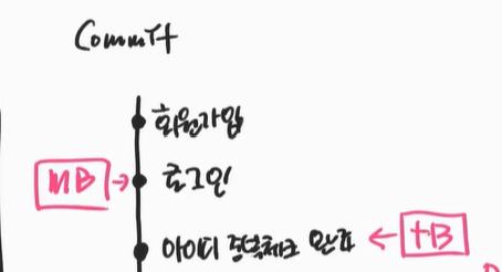 mb 포인터가 아이디 중복 완료로 이동되고, tb 포인터는 topic 브랜치의 아이디 중복 완료에 머무른다.