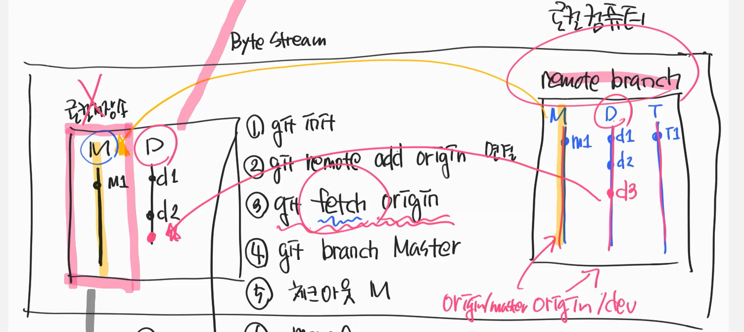 ※ remote branch 라는 영역에 fetch 를 하는 순간 git에 있는 브랜치를 동기화 시킨다.