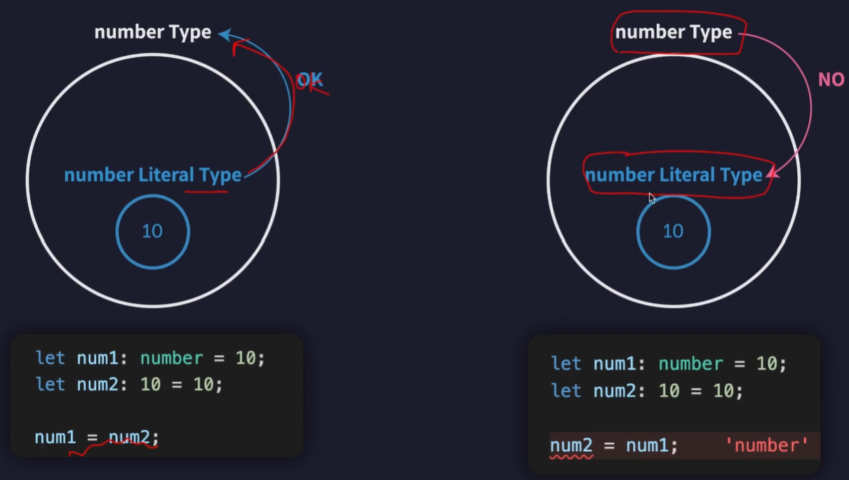 따라서 넘버 리터럴 타입은 넘버 타입의 부분 집합이 되는데,